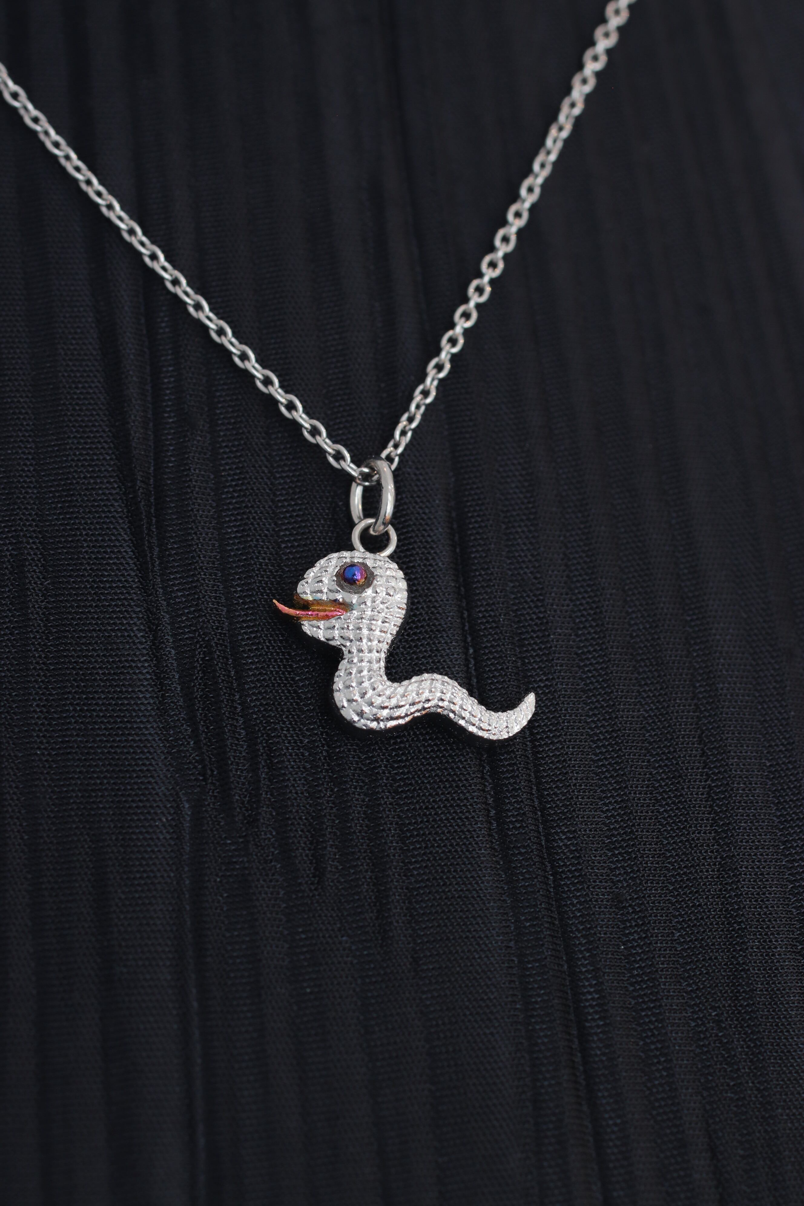 縁起の良いモチーフで小さいサイズの、軽く、錆びにくいチタン製「ヘビ」ネックレス。
