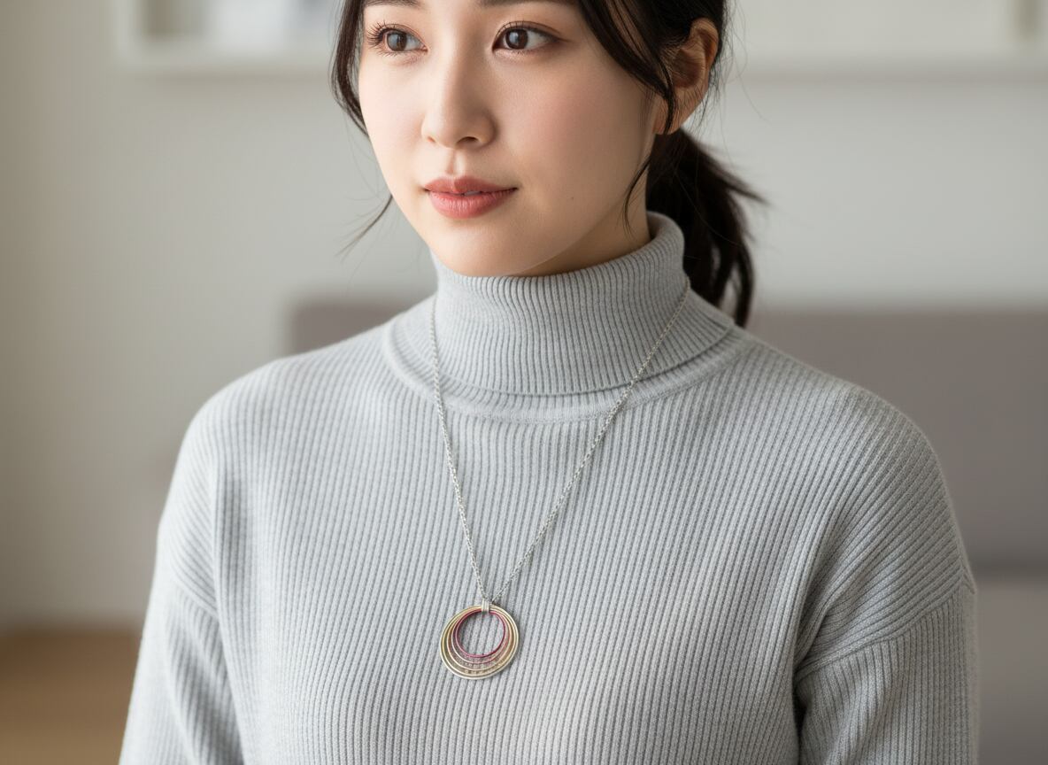 水面に起こる波紋「水紋」をチタンの美しいグラデーションで表現したネックレス。